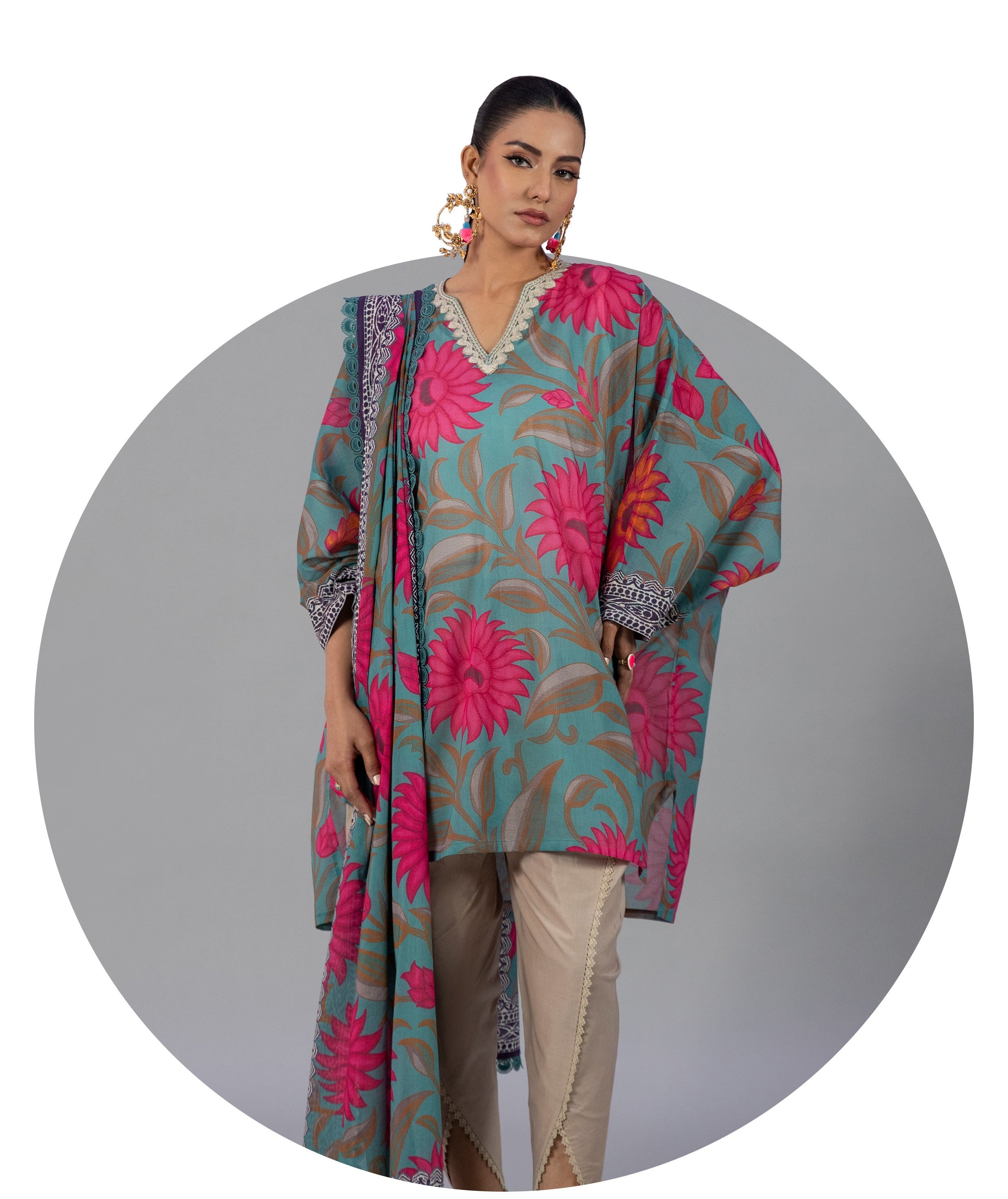 Upgrade your summer wardrobe with Sana Safinaz Classics Vol. 1, crafted from premium breathable lawn fabric with stunning digital prints. This unstitched 3-piece suit is perfect for casual and semi-formal wear, offering a chic and elegant look for every occasion.