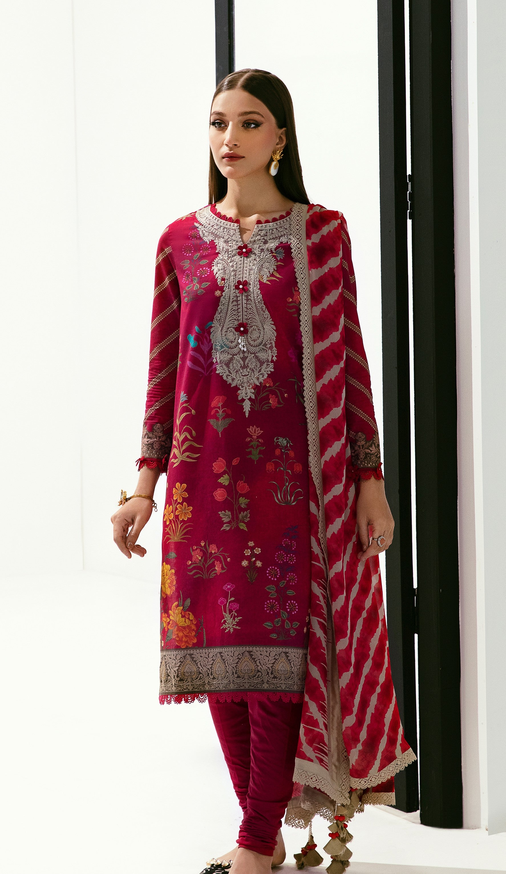 Upgrade your summer wardrobe with Sana Safinaz Classics Vol. 2, crafted from premium breathable lawn fabric with stunning digital prints. This unstitched 3-piece suit is perfect for casual and semi-formal wear, offering a chic and elegant look for every occasion.