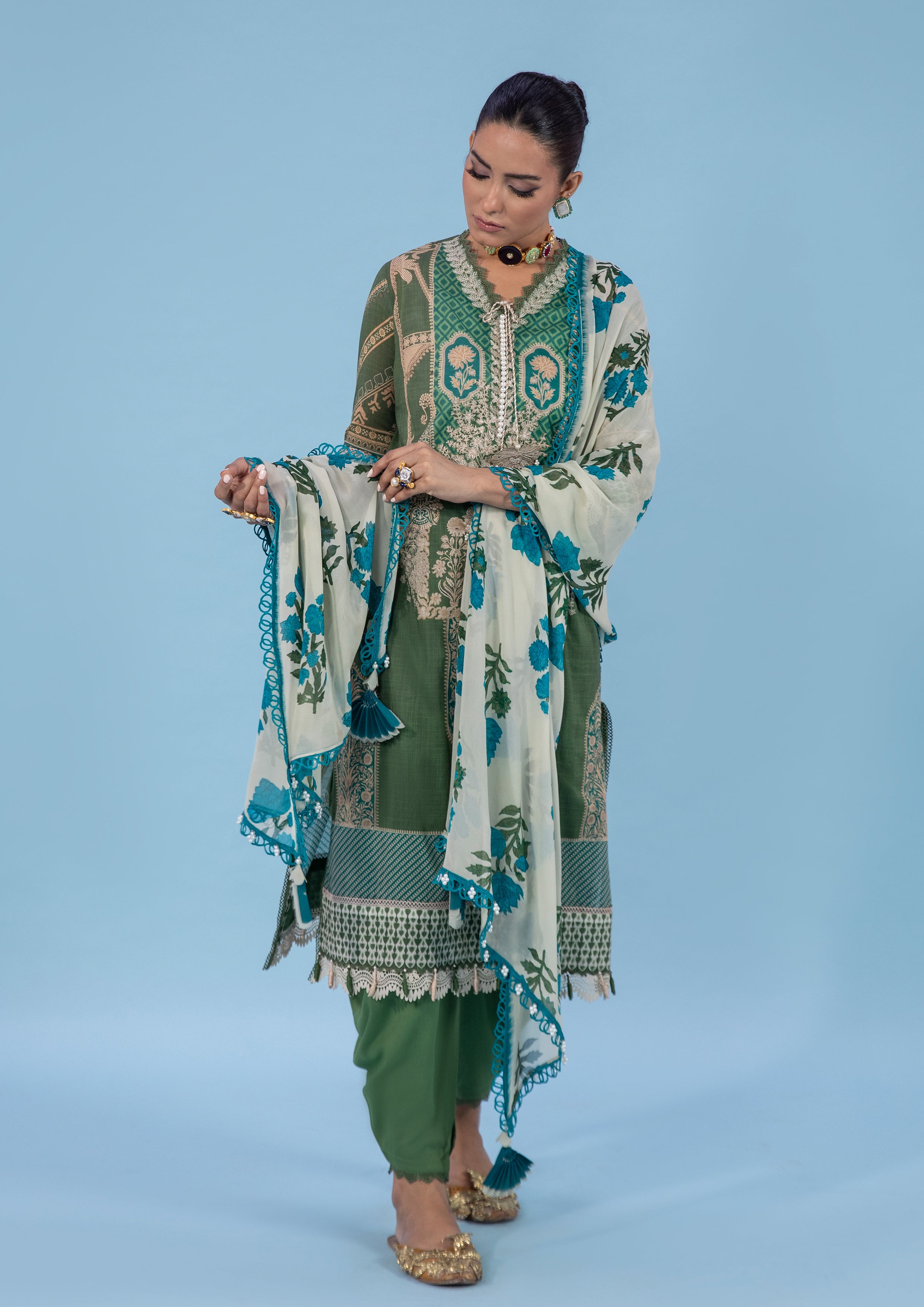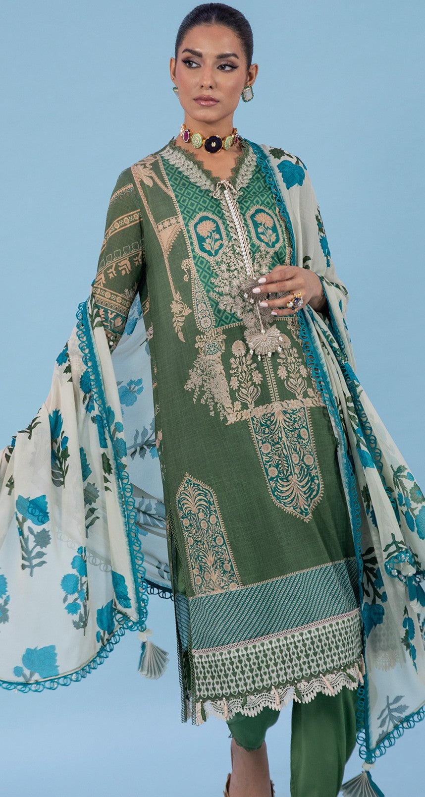 Upgrade your summer wardrobe with Sana Safinaz Classics Vol. 2, crafted from premium breathable lawn fabric with stunning digital prints. This unstitched 3-piece suit is perfect for casual and semi-formal wear, offering a chic and elegant look for every occasion.
